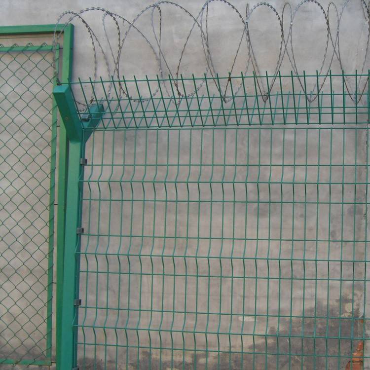 机场钢筋围界是由V型支架加固的焊接网,由安全防盗连接件和刀片刺网制成,机场钢筋围界是一种新型的防护网,它由锋利的镀锌钢板或不锈钢薄板制成叶片,钢丝是芯线的组合,监狱隔离网具有防震,防倾倒的功能,机场钢筋围界的材料坚硬,强度高,张力高,设计独特,不易碰触,因此可以达到优良的防护和隔离效果,机场钢筋围界还具有结构简单,经济实用的优点。
