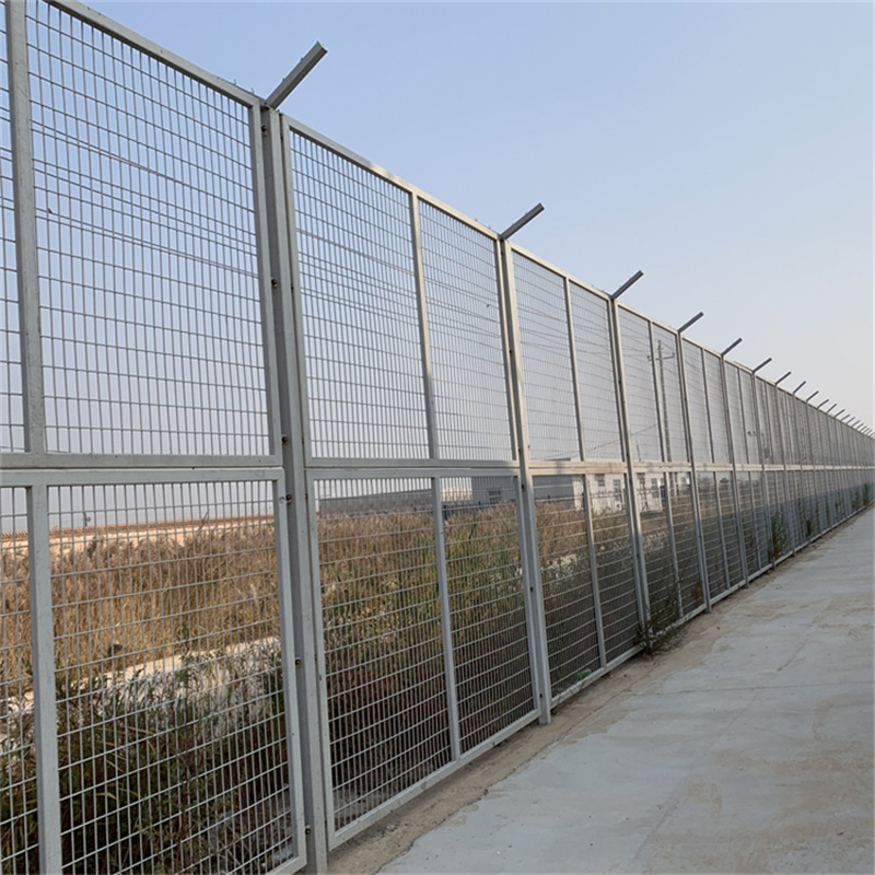 监狱警戒区隔离网监狱防护网在施工时,每间隔一定距离(通常为120米)应将网墙立柱做一次双柱分段隔离,双柱间隙不大于10mm。网墙拐角处和分段处的两根立柱应预制连体底座,连体底座的体积应为单体底座的两倍。