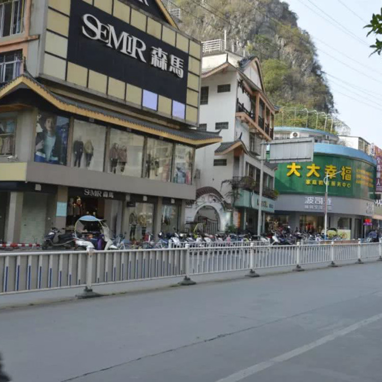 5.人行道隔离护栏:在靠近石路旁的城市道路的人行道上设置的隔离护栏。