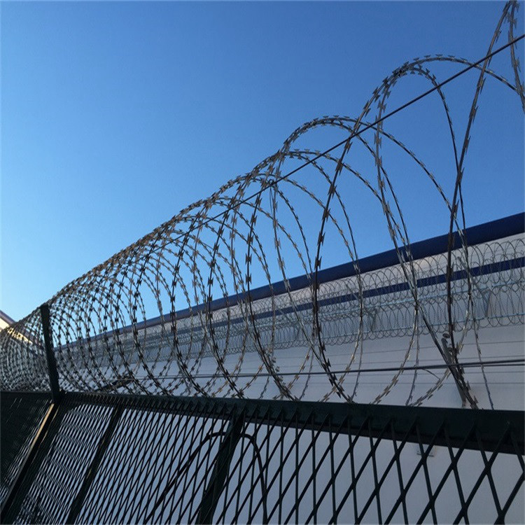 ◦ 逐片拼接网片,相邻网片搭接宽度≥50mm,用专用卡扣或焊接固定,确保网面平整无松动,顶部若带刀刺网,需与立柱顶部支架牢固焊接,刀刺间距≤100mm。