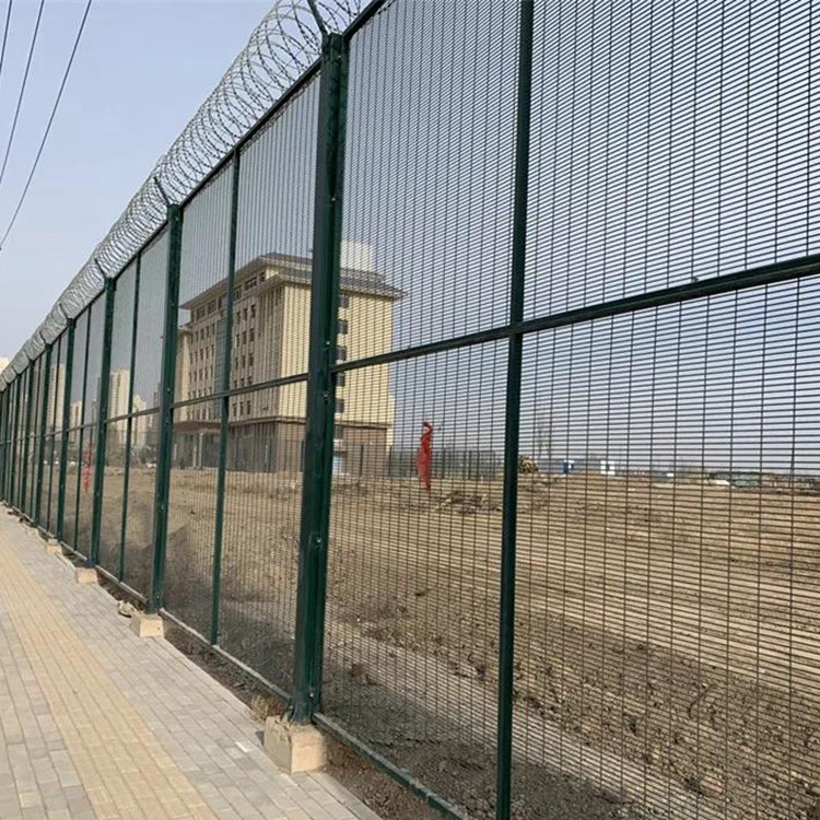在安全防护层面,358密纹网采用12.5mm×76mm或12.5mm城府100mm的细密网孔设计,有效杜绝攀爬、钻越,防止违禁物品传递,从物理结构上阻断非法突破路径,防护精度远超普通隔离网。防破坏能力方面,网片选用高强度低碳钢丝,经冷拔、焊接、热镀锌等多道工艺加工,抗拉强度达300MPa以上,能抵御剪切、冲击等暴力破坏,焊点牢固无虚焊,整体结构稳定性极强。