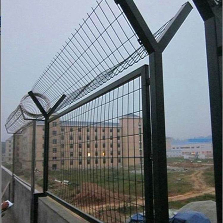 在网片尺寸方面,加高隔离网的单片宽度通常设定在1.5米至2米之间,高度则根据围墙原有基础与安防等级要求调整,常见加高段高度为2米至4米,整体可与原有围墙形成5米至8米的防护高度,满足不同监狱的安防标准。网孔样式多采用菱形孔或方形孔,菱形孔孔径一般为50mm×100mm,方形孔孔径则为50mm×50mm,既可以有效阻挡翻越,也能保持一定的视野通透性,便于安防人员巡查。