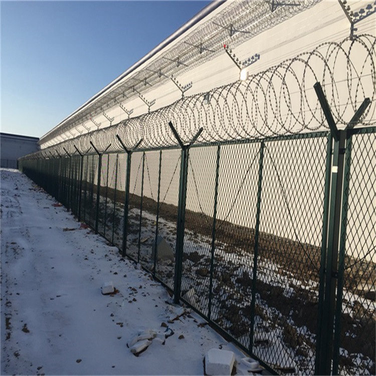 监狱钢网墙的防腐处理是确保其长期服役性能的关键环节,工艺体系通常涵盖表面预处理与涂层覆盖两道主要工序。表面预处理阶段,钢构件需通过抛丸或喷砂工艺去除氧化皮、锈蚀及杂质,使基体表面达到均匀的粗糙度,以增强涂层附着力。预处理后的构件随即进入热浸镀锌工序,浸入熔融锌液中形成锌铁合金层与外层纯锌层,该金属镀层具备物理屏蔽与电化学保护双重作用,能有效延缓基材锈蚀进程。